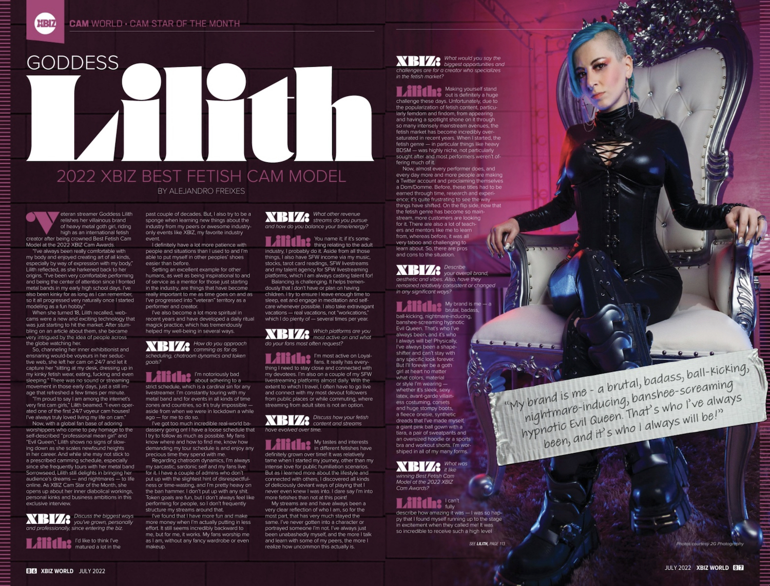 Read the July XBIZ World from cover to cover at xbiz.com/pub/xbizworld/2022-07. Goddess Lilith’s feature is on Page 86 and Page 87 and continues on Page 113.